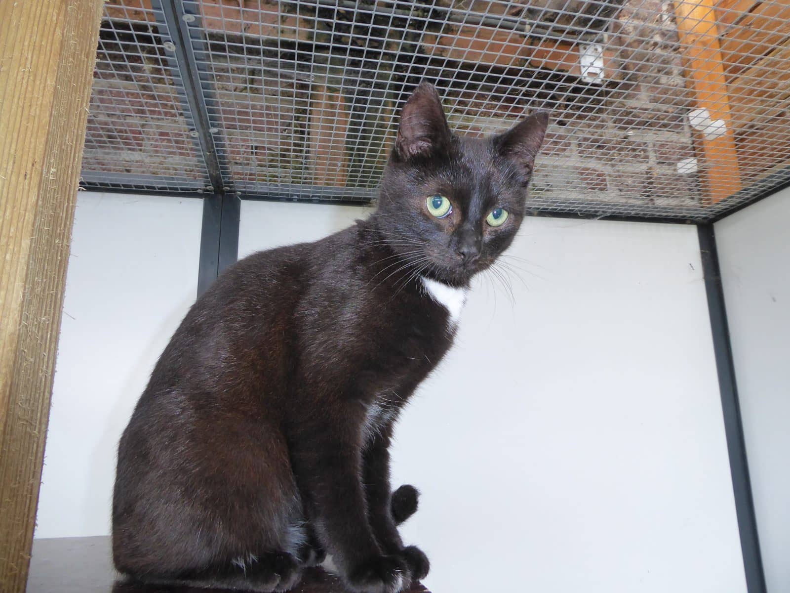 Dit zeer lief , aanhankelijke, rustig en sociaal katertje is 7 à 8 maanden jong geschat. Elliot is een specialleke qua pelskleur, hij is niet zwart maar donkerbruin wat opvalt als hij in de zon zit. hij heeft ook een mooi afgetekend wit bavetje. Meer info bij zijn opvangmoeke Patricia