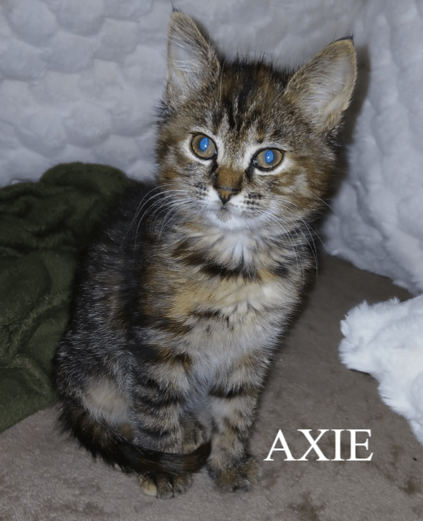 Axie is een lieftallig deugnietje met een getijgerde pels met rosse accenten