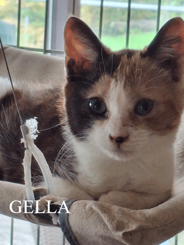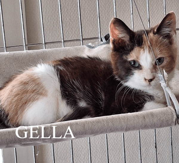 Gella had nog niet veel geluk in haar prille leventje. Gedumpt of achtergelaten door de mamapoes op een leeftijd van 5 weken, is ze uitgehongerd en ziek gevonden en bij ons binnengekomen. Na een hele periode van tender loving care, de nodige opvolging en medicatie, is deze lieve meid helemaal klaar om naar een liefdevolle, zorgzame super thuis te vertrekken.