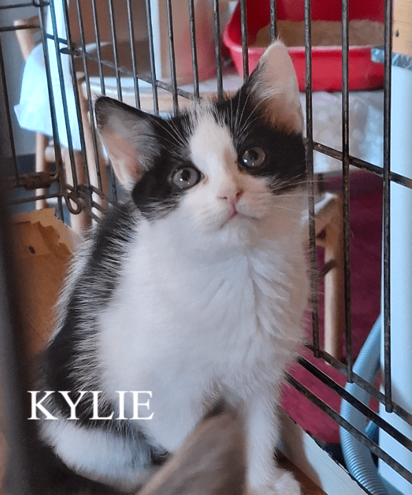 Vier kittens gevonden in een tuin en nu zijn er bijna 2 klaar om naar een thuis te vertrekken. Kylie is een elegant zwart-wit kattinnetje die samen met haar blauw-grijze Katja een warme thuis  zoekt. Op vrijdag 03/10 worden beide zusjes verder wettelijk in orde gezet zodat ze op maandag 06/10 de opvang mogen verlaten. Indien u interesse hebt om beide kittens een warme thuis te geven gelieve dan het info formulier in te vullen. Lees ook onze adoptieprocedure die u vindt op onze website .