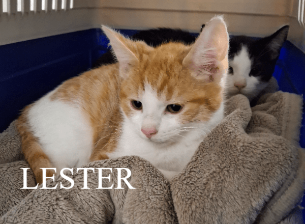 Lester, is een vriendelijk ros-wit katertje dat eventjes moet wennen maar te verleiden is met een lquid snack om zich dan gewillig te laten aaien.