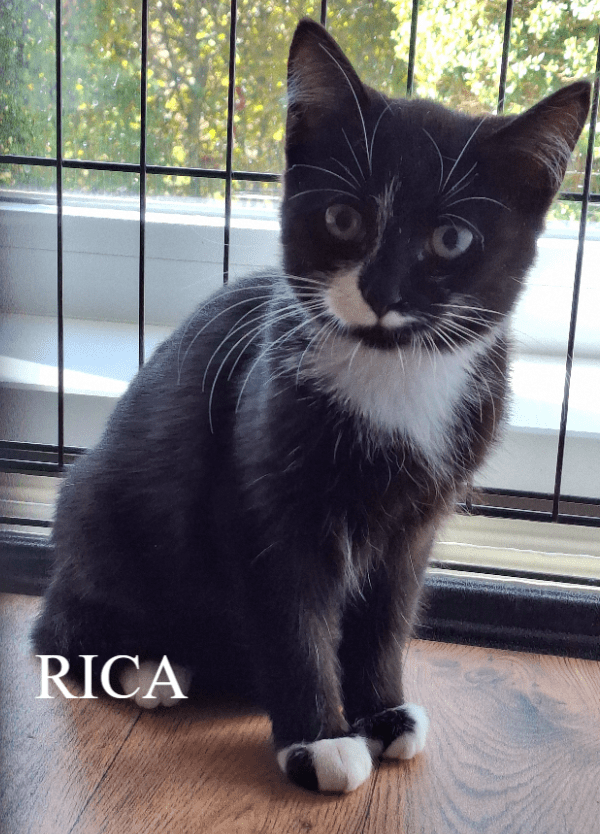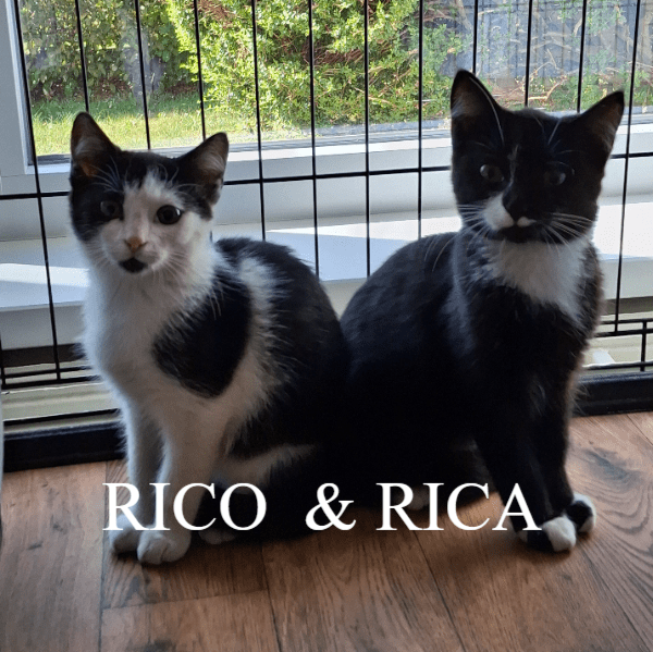 Rica en haar broer Rico zijn samen gevonden (gedumpt) in een tuin in een doodlopende straat in Knesselare. De kittens hebben zeker al een vertrouwensband met mensen maar moeten wel even wennen aan een nieuwe omgeving.