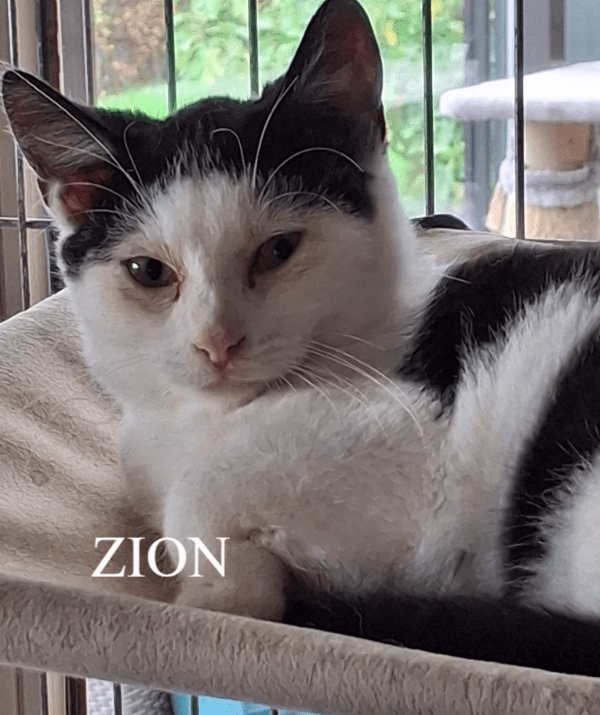 Zion is de grootste van de drie en dit zwart-wit katertje is heel lief.
